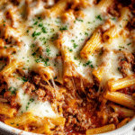 Baked ziti with ground beef is the ultimate comfort food that brings warmth and nostalgia to your dinner table. This hearty dish features layers of al dente ziti pasta, flavorful ground beef, rich marinara sauce, and a generous blend of gooey cheeses that create a delightful cheesy crust. Perfect for busy weeknights or family gatherings, this recipe is easy to prepare and will have everyone asking for seconds!