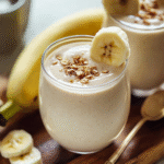 - Pour into glasses, garnish with banana slices or granola if desired, and serve immediately.