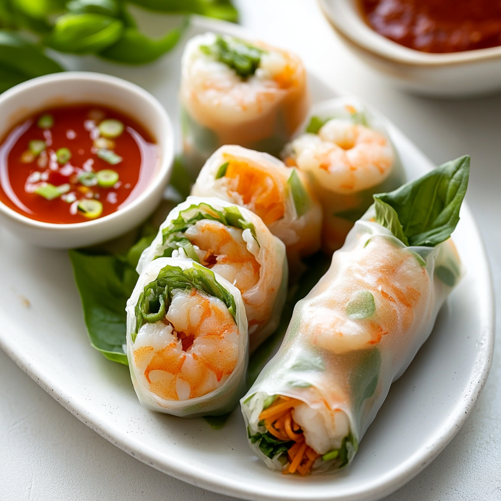 Shrimp spring rolls are the perfect combination of crunch and flavor, delivering a burst of freshness in every bite. Imagine crisp vegetables mingling with succulent shrimp, all wrapped up in delicate rice paper, ready to be dipped in a zesty sauce.