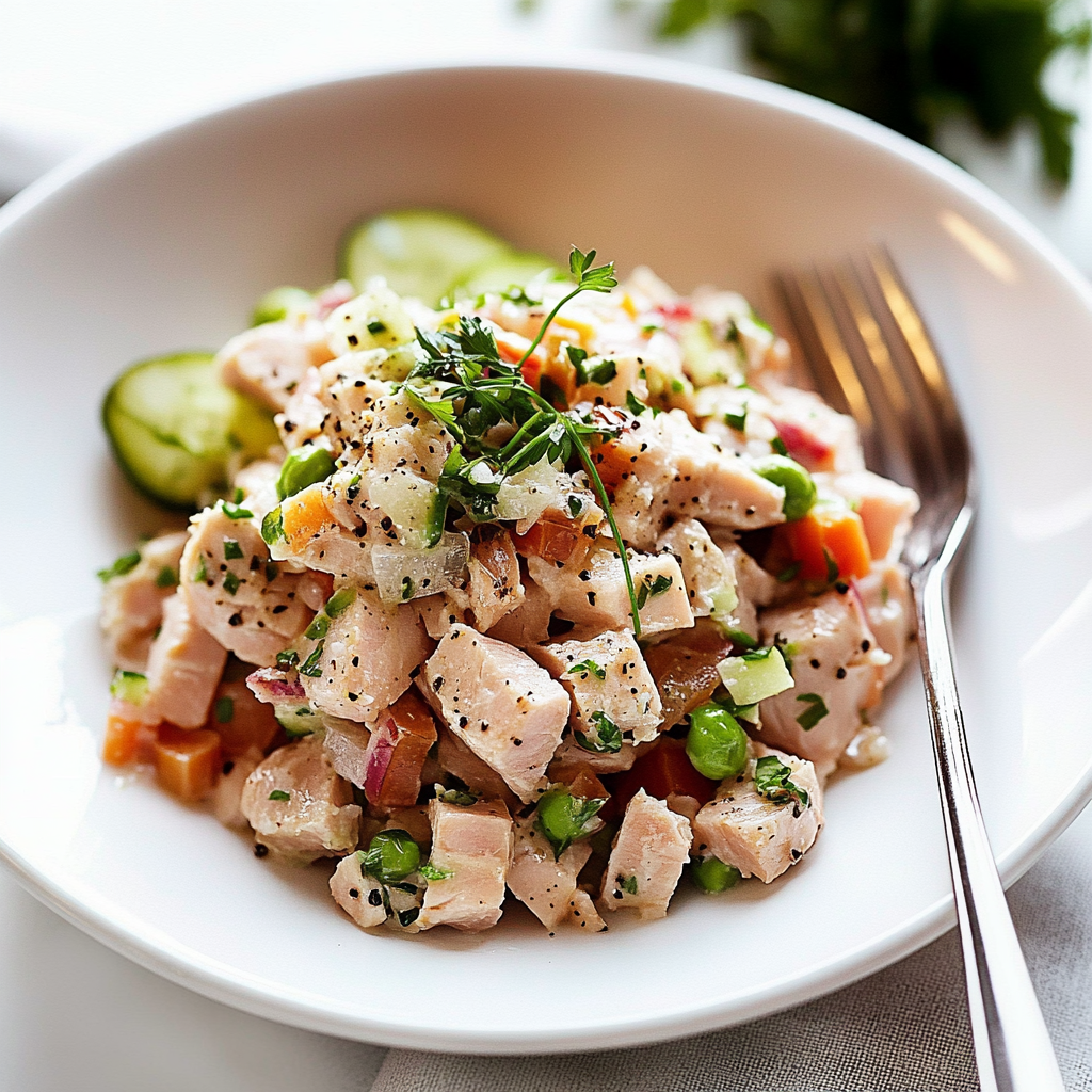 Tuna salad is a delightful mix of flavors and textures, perfect for any occasion. This quick and easy recipe features creamy mayonnaise, zesty pickles, and crunchy celery combined with tender tuna flakes. Ideal for summer picnics or busy weeknights, this vibrant dish can be served on sandwiches or enjoyed straight from the bowl. With its enticing taste and colorful presentation, it’s sure to become a favorite among family and friends.