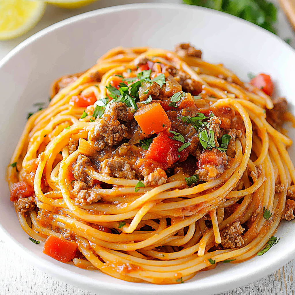 Experience the vibrant flavors of Mexican cuisine with this easy-to-make Mexican spaghetti. Combining al dente pasta, savory ground beef, colorful bell peppers, and zesty spices, this dish is a fiesta for your taste buds! Perfect for family gatherings or a cozy dinner at home, it’s sure to impress everyone at the table. With just a few simple ingredients, you can create a comforting meal that embodies warmth and joy in every bite.