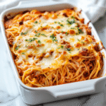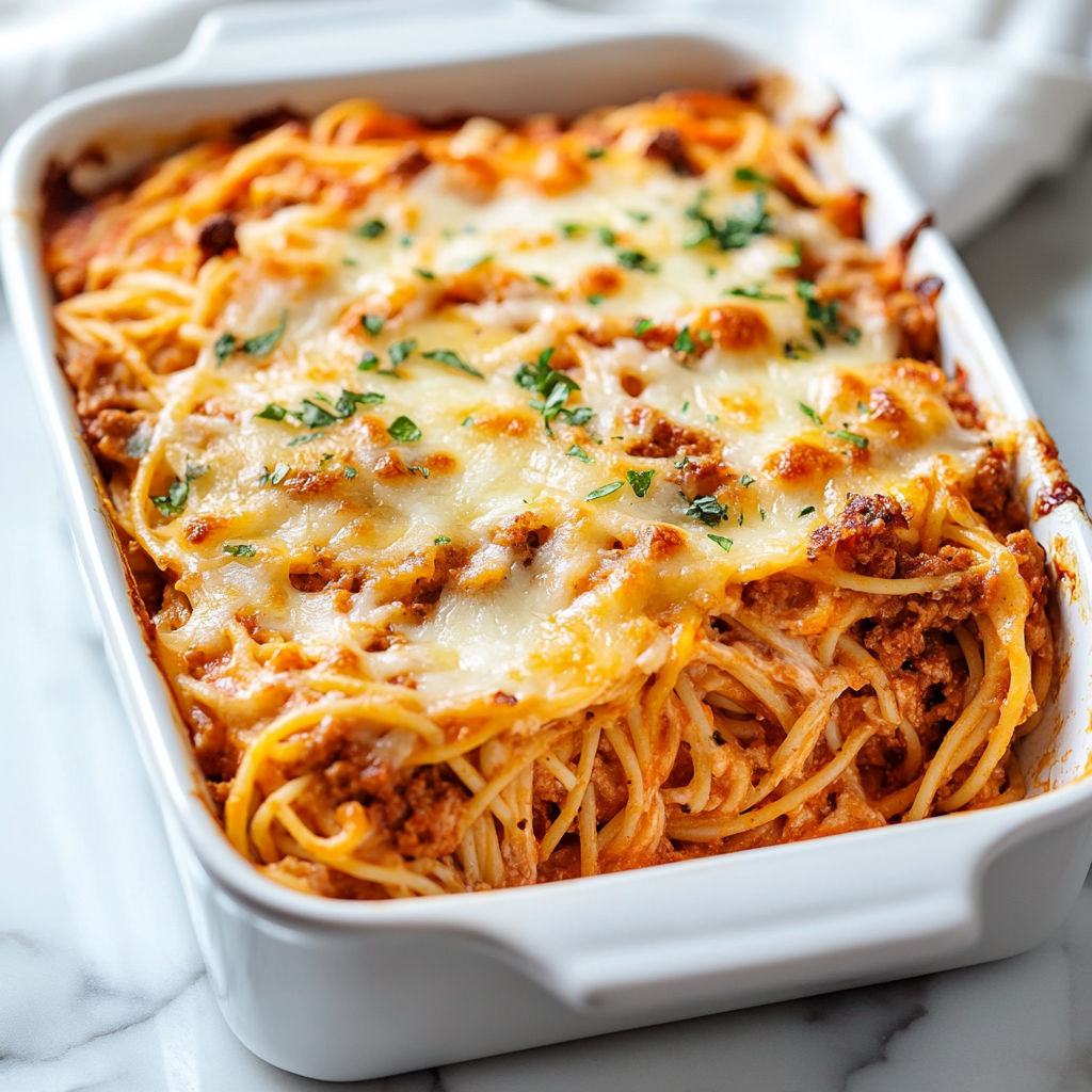 Baked spaghetti casserole is the ultimate comfort food, combining layers of perfectly cooked pasta, savory ground meat, rich marinara sauce, and gooey melted cheese. This dish is not only easy to prepare but also a crowd-pleaser at family gatherings or weeknight dinners. With its delightful aroma and hearty flavors, it’s sure to become a favorite in your household.