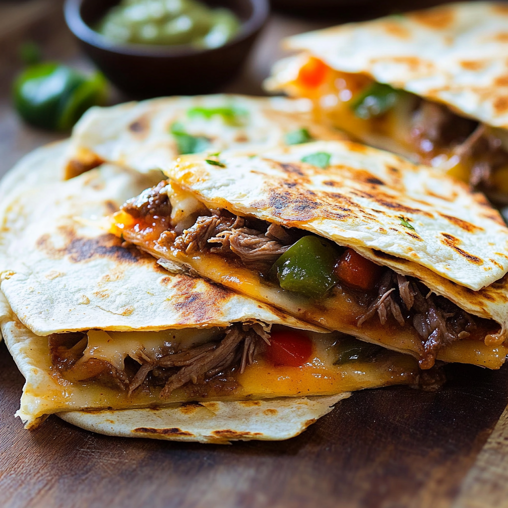 Beef quesadillas are a delicious fusion of savory ground beef, melted cheese, and sautéed vegetables, all wrapped in a warm tortilla. Perfect for casual dinners or festive gatherings, these quesadillas deliver a burst of flavor in every bite. Quick to prepare and easy to customize with your favorite ingredients, they’re sure to become a family favorite. Serve them with sour cream or salsa for an extra touch of deliciousness!