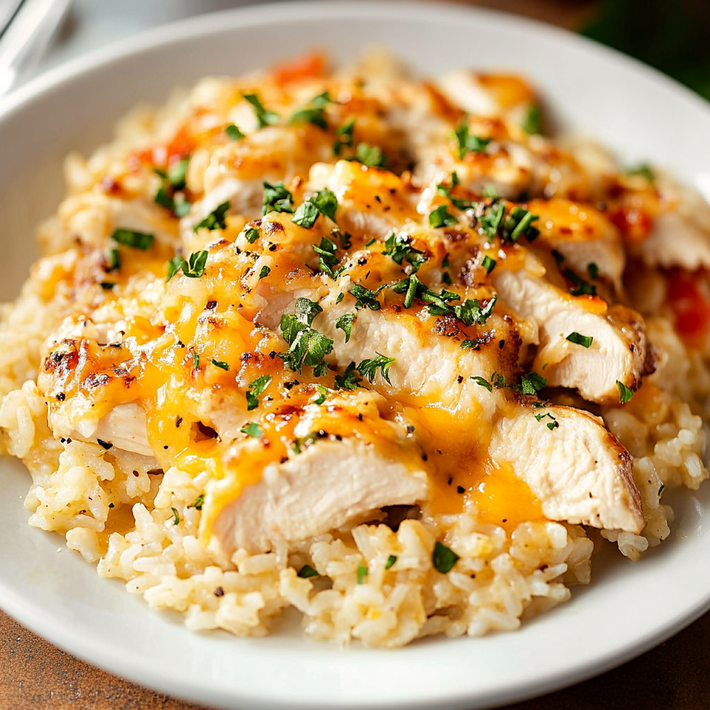 Cheesy chicken and rice is a comforting dish that delivers warmth in every bite. Perfectly tender chicken simmers in a creamy sauce, wrapped in fluffy rice and topped with gooey cheese. This simple yet satisfying meal is ideal for busy weeknights or family gatherings, impressing everyone without the stress. Customize it with your favorite veggies and spices to create a dish that’s uniquely yours!