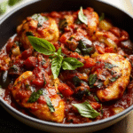 Crispy chicken thighs simmered in a rich, aromatic tomato sauce make this Chicken Cacciatore a comforting Italian classic. With every bite, you’ll enjoy the vibrant flavors of fresh herbs and spices, creating a dish that’s perfect for family dinners or impressing guests. Easy to prepare and even better the next day, this recipe is sure to become a favorite in your kitchen.