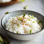 Coconut rice complements curries, grilled meats, or tropical salads beautifully.