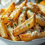 Garlic Parmesan Fries are the ultimate indulgence for any occasion, delivering a perfect balance of crispy texture and rich flavor. These golden fries are tossed in fresh garlic and finely grated parmesan cheese, making them irresistible. Whether they’re served as a side dish at family gatherings or enjoyed during movie nights, each bite is a heavenly experience. Quick and simple to prepare, they will quickly become a favorite that you’ll want to whip up again and again.