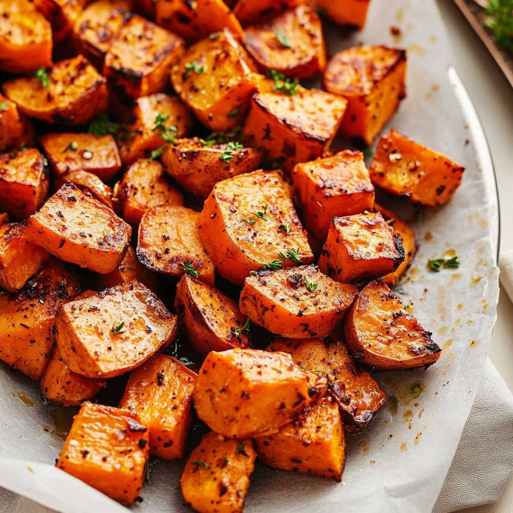 Indulge in the delightful flavor and texture of roasted sweet potatoes, a versatile dish that perfectly balances sweetness with savory notes. These tender, caramelized cubes are easy to prepare and make an excellent side for any meal or a delicious addition to salads. With just a few simple ingredients, you can elevate your dining experience with this colorful and nutritious recipe that is sure to impress family and friends.