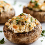 Stuffed mushrooms with cream cheese are the perfect crowd-pleaser for any occasion. These savory bites feature large button mushrooms filled with a creamy mixture of cream cheese, Parmesan, and fresh herbs, all topped with a golden layer of crispy panko breadcrumbs. Whether served as an appetizer or side dish, these stuffed mushrooms are sure to impress your guests and leave them asking for more.