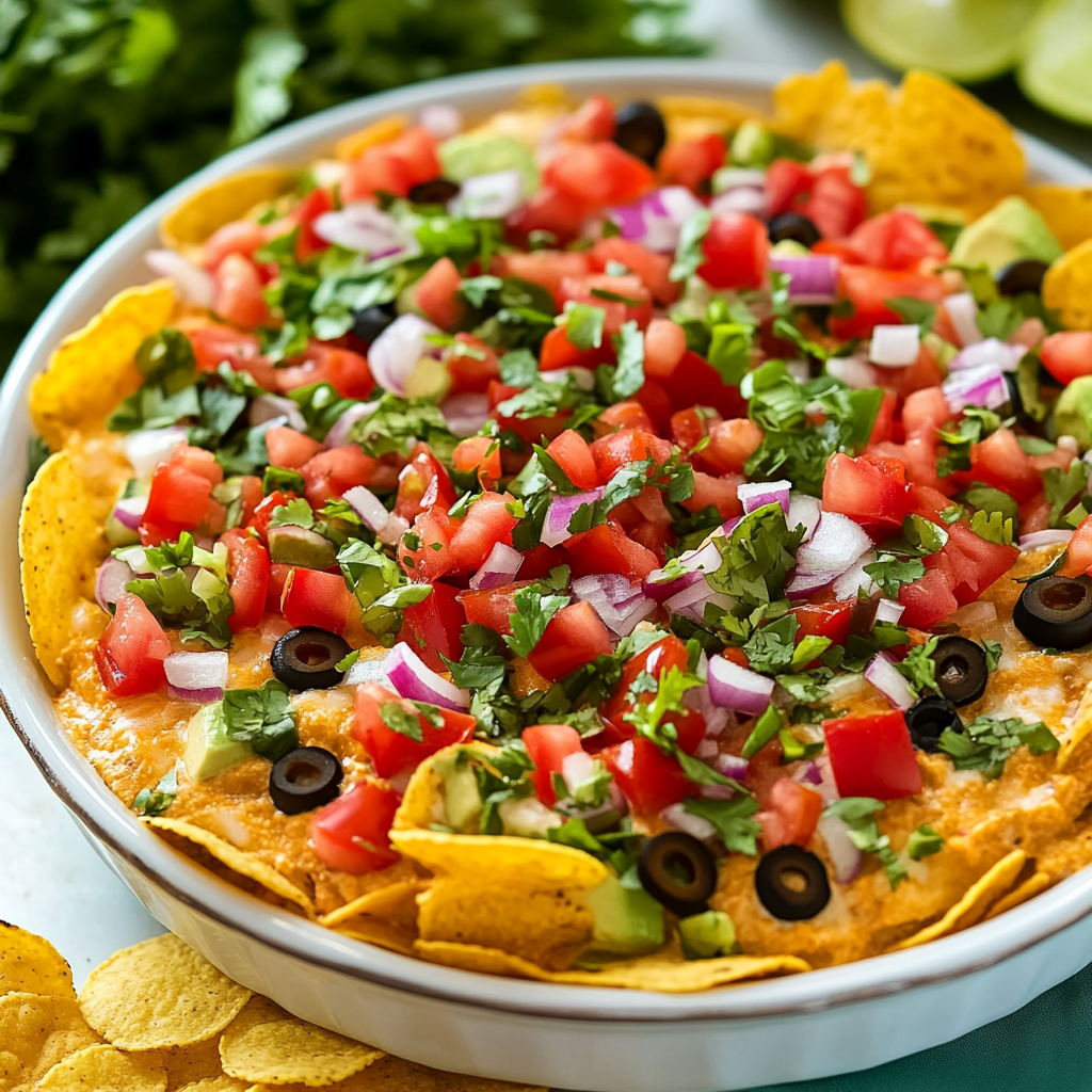Taco dip is the perfect crowd-pleaser for any occasion, offering a delightful blend of creamy cheeses and zesty flavors, topped with vibrant ingredients. This easy-to-make dish is ideal for parties, movie nights, or casual get-togethers. With its colorful layers and satisfying crunch from tortilla chips, every bite promises to be an explosion of taste that will leave your guests coming back for more.