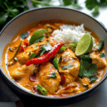 Indulge in the vibrant flavors of Thai Red Curry Chicken, a dish that transforms ordinary dinners into extraordinary experiences. This recipe features succulent chicken thighs simmered in a rich, creamy coconut milk sauce infused with aromatic Thai red curry paste. Bursting with colors and textures from fresh bell peppers and fragrant basil, this dish is perfect for weeknight meals or impressing guests. Serve it over fluffy jasmine rice or noodles for a delightful culinary escape.