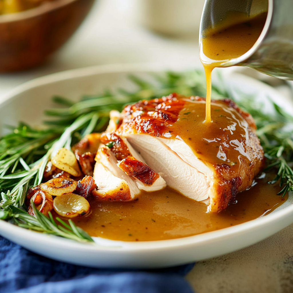 Begin by collecting turkey drippings while the bird rests. Then, whisk in flour over medium heat to create a roux before slowly adding broth for the perfect consistency.
