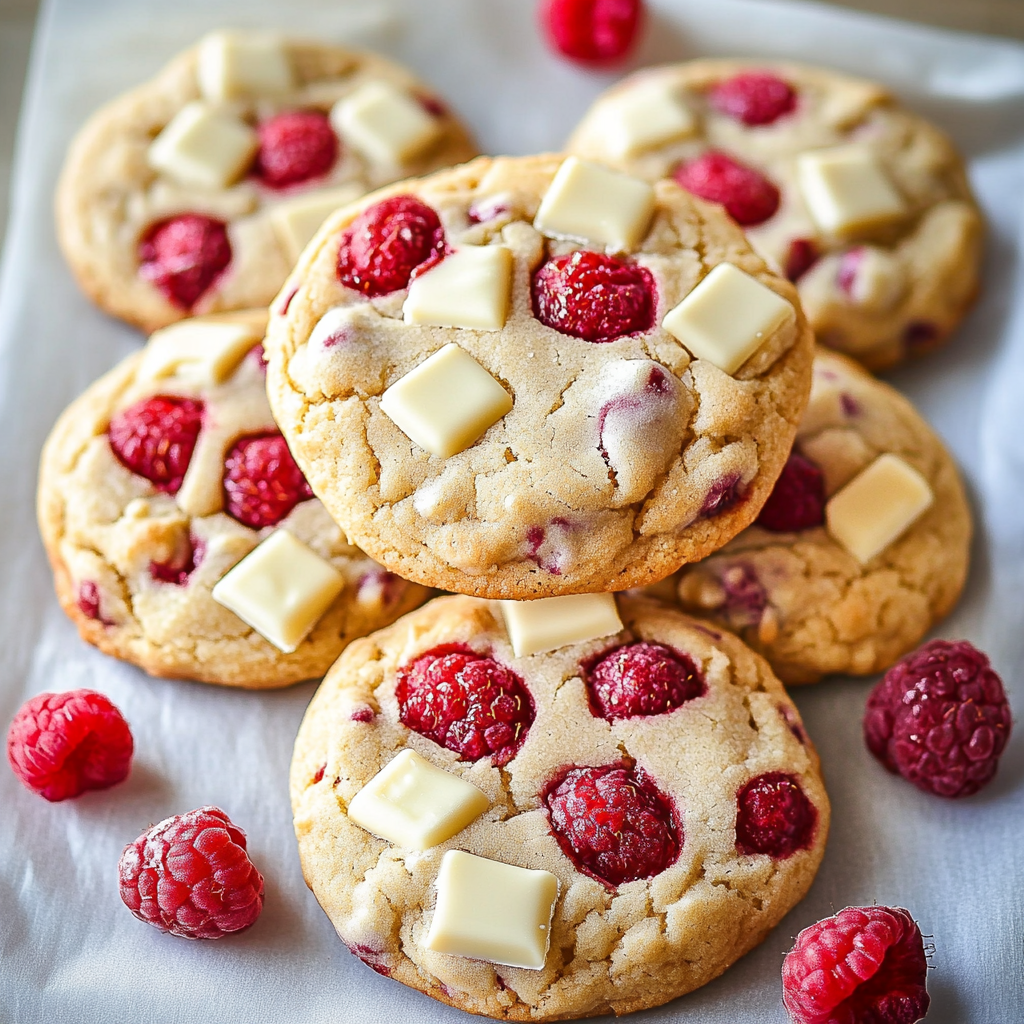 These White Chocolate Raspberry Cookies are a delightful treat that combines the tartness of fresh raspberries with the creamy sweetness of white chocolate. Baked to perfection, each cookie boasts a soft, chewy texture and a burst of flavor that makes them irresistible. Ideal for any occasion, these cookies will fill your kitchen with an enticing aroma and surely impress your family and friends.