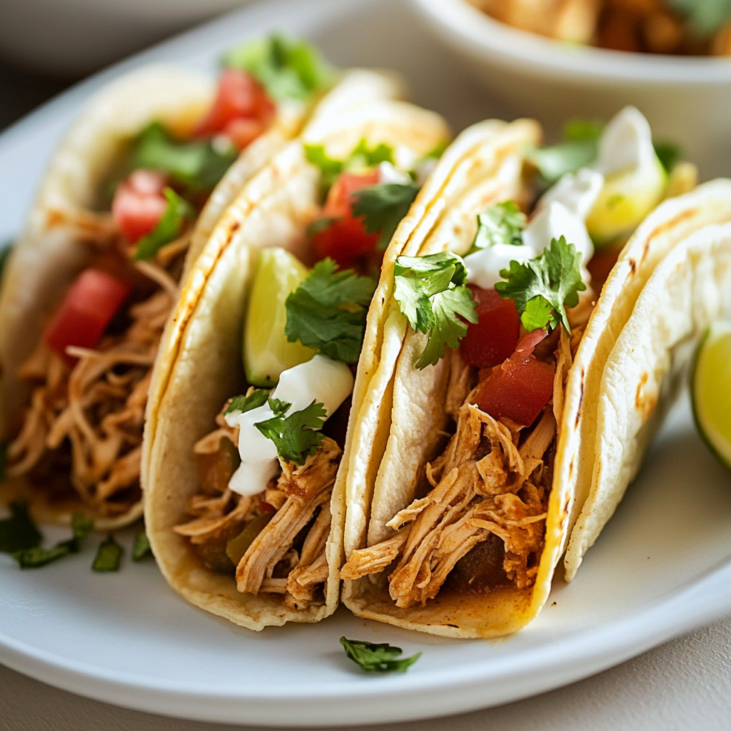 Taco Time!: Warm your tortillas briefly on a skillet or microwave them for about 30 seconds before loading up your shredded chicken. Top generously with fresh salsa, creamy avocado slices, and zesty cilantro.
