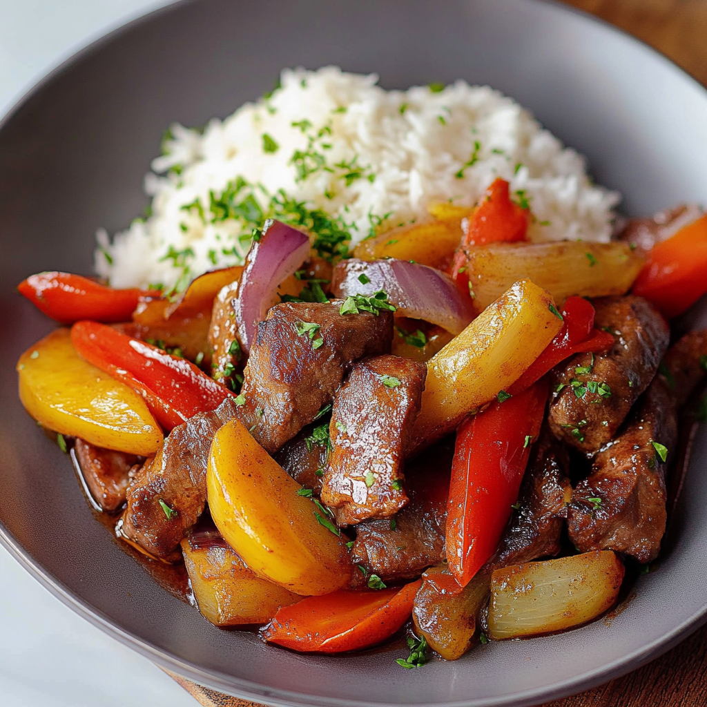 Lomo saltado is a vibrant Peruvian dish that combines juicy strips of beef, colorful vegetables, and the delightful twist of French fries. Imagine the aroma of sautéed onions mingling with tender meat, creating an irresistible scent that wafts through your kitchen. This dish isn’t just a meal; it’s a fiesta on your plate, bursting with flavors that dance like confetti at a celebration.