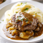 Savor the nostalgia of homemade comfort food with this Salisbury steak recipe, where juicy beef patties are enveloped in a rich, savory gravy infused with caramelized onions. Perfect for busy weeknights, this dish is not just a meal but a delightful experience that will transport you back to family dinners filled with laughter and love. Serve it over fluffy mashed potatoes or rice for a heartwarming treat that will leave everyone asking for seconds.