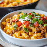 Taco mac and cheese is a delicious fusion of creamy, cheesy pasta and bold taco flavors, making it the ultimate comfort food. This dish combines elbow macaroni, seasoned ground beef, and gooey cheddar cheese for a delightful meal that is perfect for weeknight dinners or game-day gatherings. Customizable with various toppings, it’s sure to be a hit with friends and family alike.